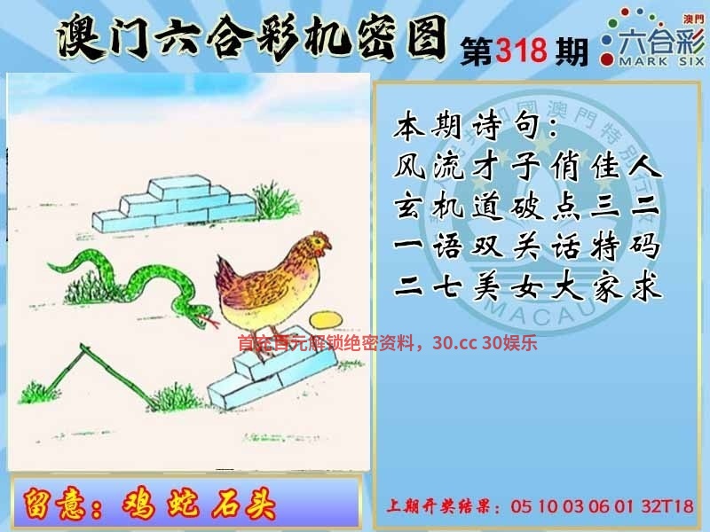 【精解澳门机密图】开(鼠06) 318期诗句:风流才子俏佳人,玄机道破点三二,一语双关话特码,二七美女大家求 318期留意:鸡蛇石头 【综合取特】羊兔虎龙鼠牛 |